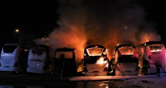 Yolcu otobüsleri alev alev yandı