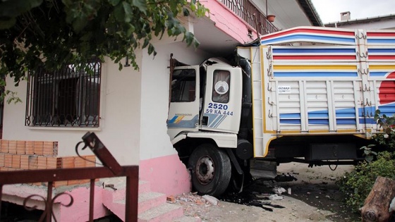 Kamyon çarpışmanın ardından yol kenarındaki eve girdi.