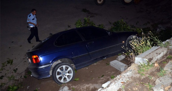 Yoldan çıktı istinat duvarından aşağıya düştü, sürücünün burnu bile kanamadı