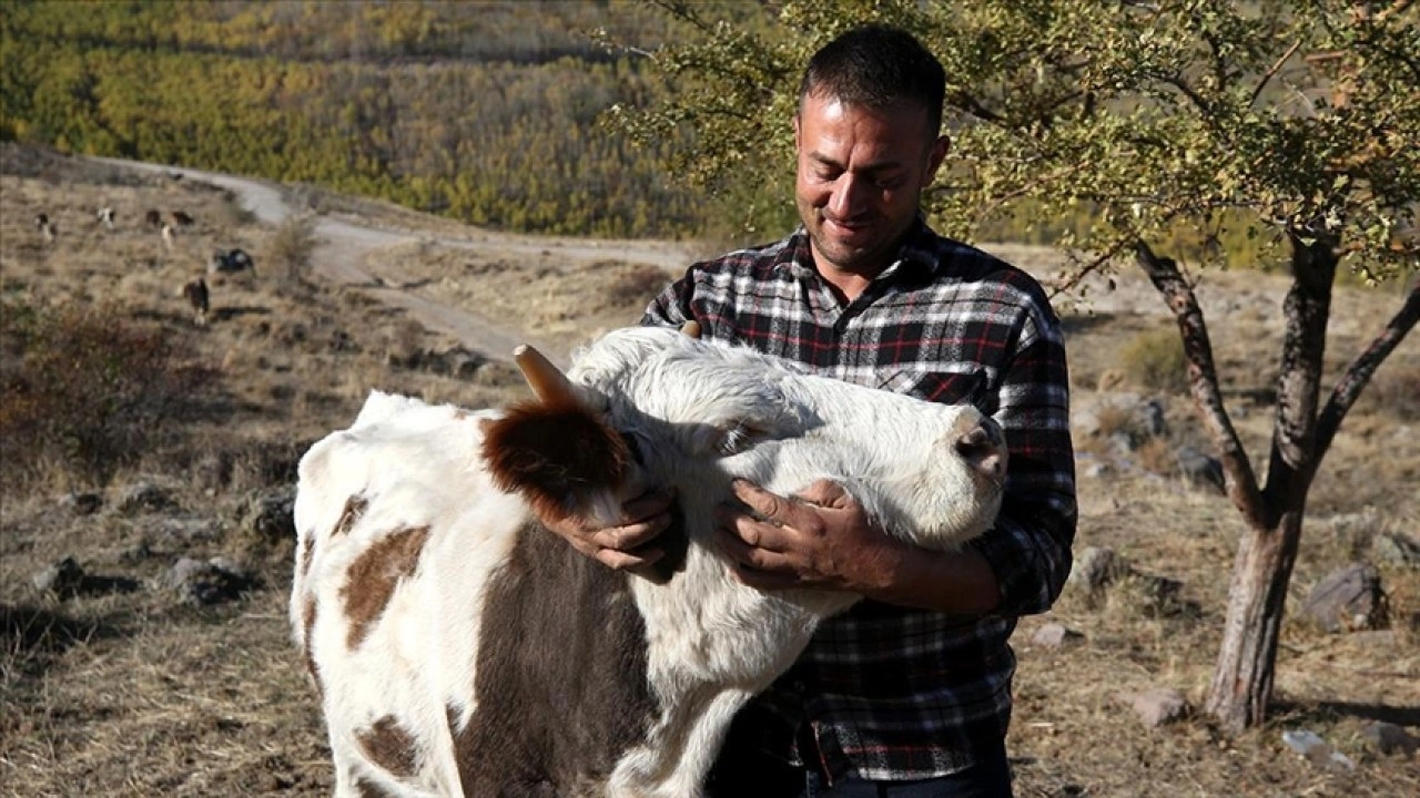 Ömer Dede, İç Anadolu'nun en yüksek dağı Erciyes'te 150 büyükbaş hayvanına çobanlık yapıyor.