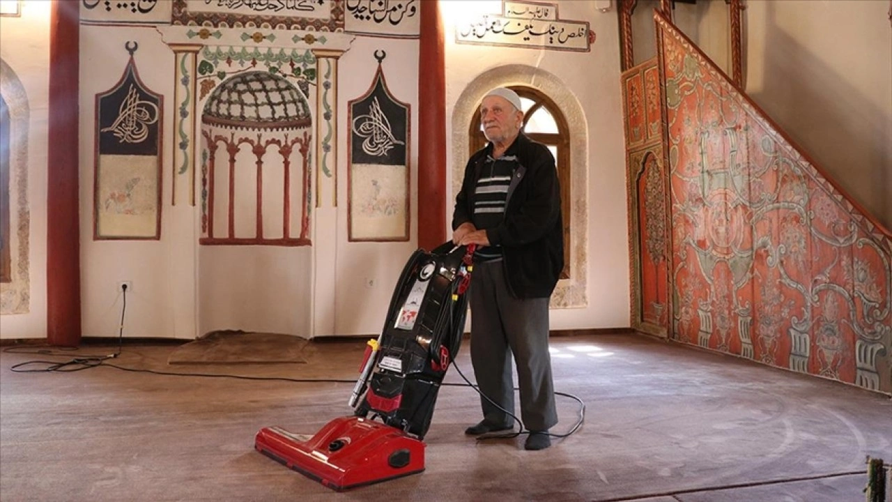 Yeniden ibadete açıldıktan sonra haftada bir gün, özellikle cuma günleri erkenden camiye gelen Bekir Badat, avluyu süpürüyor, iç temizliğini yapıp minber ve duvarların bazı bölümlerinin tozunu alıyor.