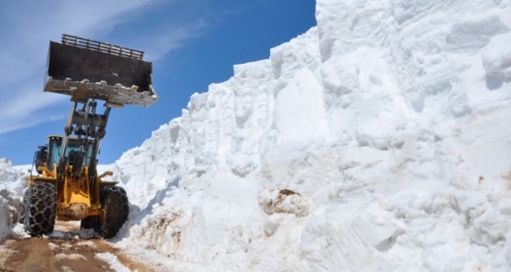 Kepçenin boyunu aşan karda ilerlemekte güçlük çeken ekipler, çığ tehlikesine rağmen çalışmalarına gece gündüz devam ediyorlar.