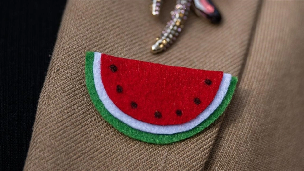 Yunan haber portalı Esos.gr’nin aktardığına göre, bir lise öğrencisi geçit töreninde "özgürlük mesajı" vermek amacıyla Filistin’in simgesi haline gelen karpuz rozeti taktı.