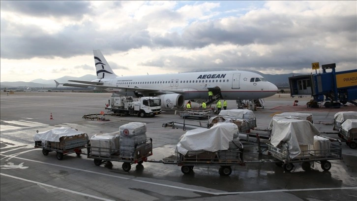 Aegean Havayollarına ait uçağa başkent Atina'daki Eleftherios Venizelos Havalimanı'nda Türkiye'ye gönderilmek üzere çadır, sedye, sağlık gereçleri ve battaniye gibi malzemeler yüklendi.