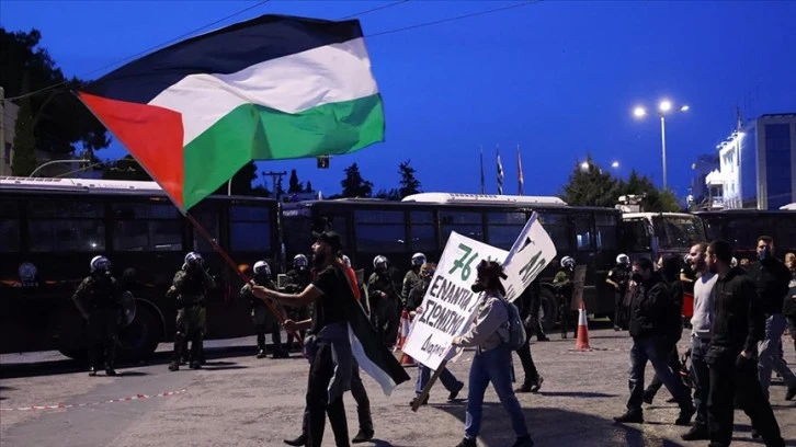 Yunanistan'da yaşayan Filistinliler, ülkede faaliyet gösteren sivil toplum kuruluşları ve öğrencilerin çağrısıyla başkent Atina'da toplandı.