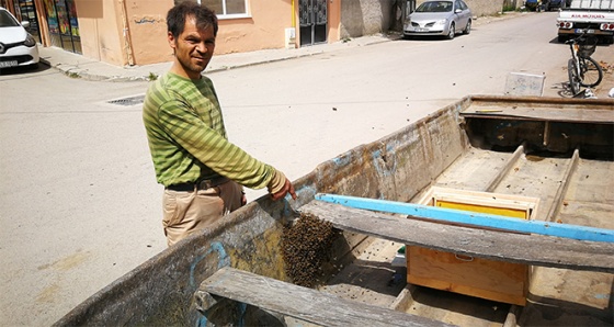 Bursa'nın İznik ilçesinde kovandan firar eden yüzlerce arı, tamirat için bırakılan kayığa oğul bıraktı.