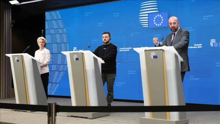Zelenskiy, olağanüstü AB liderler zirvesi marjında AB Komisyonu Başkanı Ursula von der Leyen ve AB Konseyi Başkanı Charles Michel ile ortak basın toplantısı düzenledi.