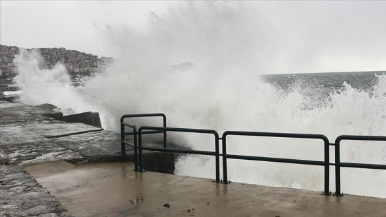 Zonguldak'ta kuvvetli rüzgar nedeniyle dalgalar mendireği aştı