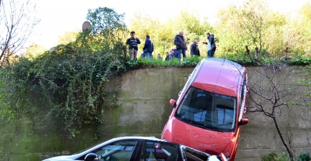 Zonguldak’ta park halindeki bir otomobil iddialara göre freni boşalınca, üç metre yükseklikten aşağı uçtu. Park halindeki diğer bir otomobilin üzerine uçan otomobil, duvarda asılı kaldı.