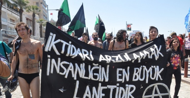İzmir’deki 1 Mayıs kutlamalarında arama noktalarında polisin üstlerini aramasına izin vermeyen bir grup soyunup arama noktasından geçmişti. Kendilerine ‘Anarşist’ diyen gruptaki erkek ve kadınlar, Birinci kordon Ordu Evi yanındaki arama noktasında soyunmuştu. Gruba polis müdahale etmişti. Olayla ilgili İzmir emniyeti, ’Anarşistler’ grubuna yönelik elde edilen görüntüleri incelemeye aldı. Ahlak Büro Amirliği ’teşhircilik’ suçu işledikleri iddiasıyla arama noktalarında soyunan 2 kadın ile 3 erkeği gözaltına almak için çalışma başlattı. Kimliği belirlenen protestoculardan F.K. gözaltına alınırken geriye kalan 2 si erkek 4 göstericinin de gözaltına alınacağı belirtildi.