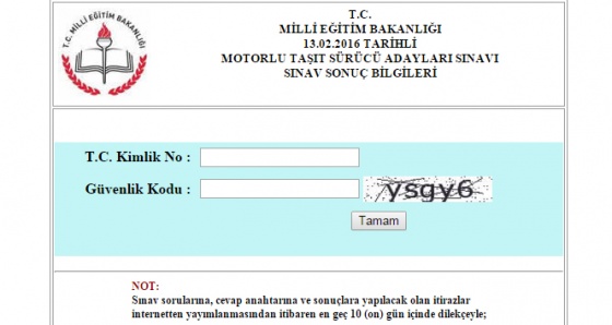 Milli Eğitim Bakanlığı tarafından 13 Şubat Cumartesi günü düzenlenen ehliyet sınav sonuçları açıklandı. Sürücü adayları sınav sonuçlarını Milli eğitim Bakanlığı’nın resmi internet sayfası meb.gov.tr adresinden sorgulama yapabilirsiniz.
