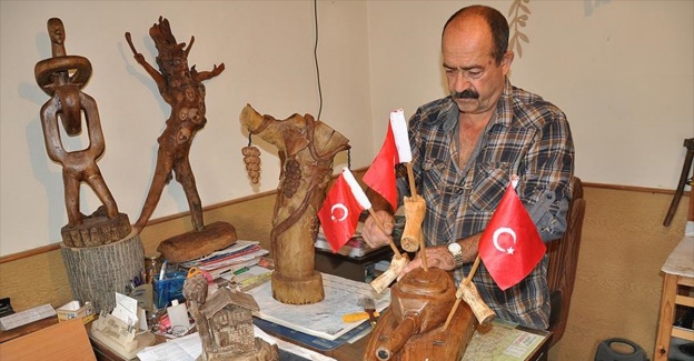 Bunun üzerine 1 metrelik ceviz kütüğü yontarak, hain kalkışma sırasında yaşanan olayları yansıtmaya çalıştığını dile getiren Bagana, şunları kaydetti: