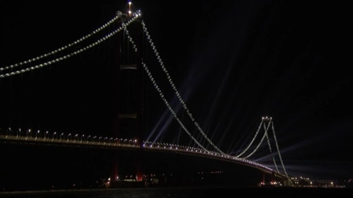 Asya ile Avrupa kıtalarını Çanakkale Boğazı'nda ilk kez birbirine bağlayan 1915 Çanakkale Köprüsü'nde gece de ışık gösterisi yapıldı.