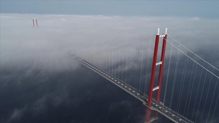 Asya ile Avrupa kıtaları arasında 2 bin 23 metre orta açıklığı ile dünyanın en uzun orta açıklıklı asma köprüsü unvanına sahip 1915 Çanakkale Köprüsü ile çevresinde de yoğun sis etkisini hissettirdi.
