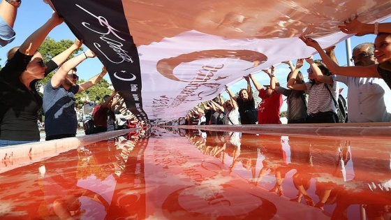 Antalya'da 300 kişi,15 Temmuz darbe girişiminin 241 şehidi anısına 241 metrekarelik ebru çalışması gerçekleştirdi.
