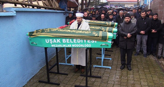 Dün İzmir Adli Tıp'ta ölüm sebeplerinin öğrenildiği otopsinin ardından Uşak'a getirilen 3 kardeşin cenazeleri gözyaşları içinde ebediyete uğurlandı.