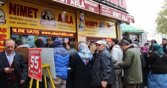 Milli Piyango İdaresi'nin bu seneki yılbaşı ikramiyesi 55 milyon TL olarak belirlenince vatandaşlar da bilet gişelerine koştu. Biletlerin tükenme ihtimali üzerine son günlere kalmak istemeyen bazı vatandaşlar, büyük ikramiyeyi kazanma hayaliyle bilet gişelerinin önünde kuyruk oluşturdu. Yıllardır Eminönü'nde Milli Piyango bileti satan Nimet Abla gişesinin önünde ‘umut’ kuyrukları oluşurken, büyük ikramiyenin 55 milyon TL olduğu yılbaşı biletlerinden alabilmek için sıra bekleyenler hayallerini paylaştı.