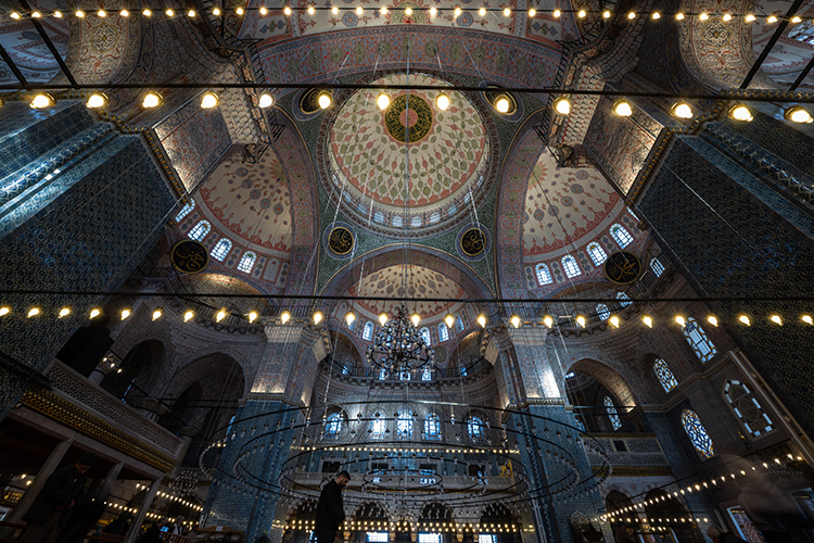 marmara Üniversitesi İlahiyat Fakültesi Türk - İslam Sanatları Tarihi Ana Bilim Dalı Öğretim Üyesi Prof . Dr. Aziz Doğanay, Yeni Cami'nin uzun yıllar süren inşaat sürecini , mimari yapısını ve süslemelerini anlattı.