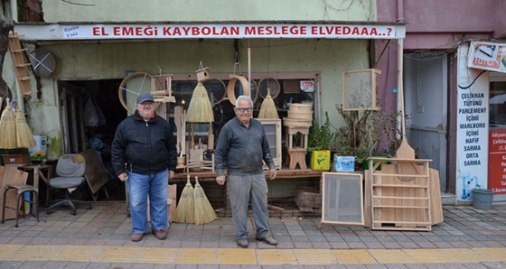 Teknolojinin her geçen gün gelişmesi, insanların fabrikasyon ürünleri tercih etmesi ile birlikte eskiye rağbetin azaldığını ifade eden Örcün, "Balıkesir'in Gönen ilçesinde 1936'da doğdum. 1955 yılında askere gittim. Askerlikte marangozluğu öğrendim. 50 yıldır bu dükkanda marangozluk yapıyorum. Tel dolap, tabaklık, tahta beşik, oklava, yastağaç, elek ve fare kapanı imalatı ve yoğunlukla tamir işleri yapıyorum. Kapıya da yazdım, el emeği kaybolan meslek diye. Oğlum var, ama mesleği öğrenmek, devam ettirmek istemiyor. Eskiden tel dolap, tabaklık yapmaya yetişemezdik. Teknoloji ile her şey ucuzladı, değişti" dedi.