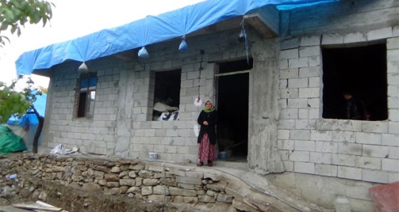 ”Toprak evim vardı. Sürekli dökülüyordu. Valiliğe başvurdum. Allah razı olsun bir proje ile demir, briket, kum ve çimento yardımı yaptılar. Şuan evimin iskelesini yaptılar. Fakat evin kapısı, penceresi, elektriği, sıvası ve çatısı yok. Eşim işsiz. Maddi durumumuz hiç yok. Çocuklarımla sekiz aydır çadırda yaşıyorum. Çocuklarımın banyosunu ve elbiselerini dışarıda yıkıyorum. Çadırın arkasında derme çatma bir mutfak yapmışım. Yemekleri orada yapıyorum. Havalar soğudu. Dağlara kar yağdı. Bu kış çocuklarımla çadırda yaşayamam. Allah rızası için hayırsever ve yetkililerden evimin son birkaç eksiği için yardım istiyorum” diye konuştu.