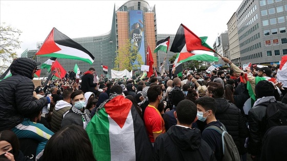 Belçika'nın başkenti Brüksel'de Avrupa Birliği (AB) kurumlarının bulunduğu meydanda İsrail'in saldırıları karşısında Filistinlilerle dayanışma gösterisi düzenlendi.