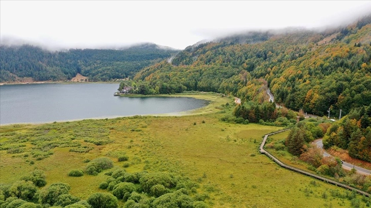 ????Abant Gölü Milli Parkı'ndaki renklilik havadan da görüntülendi.
