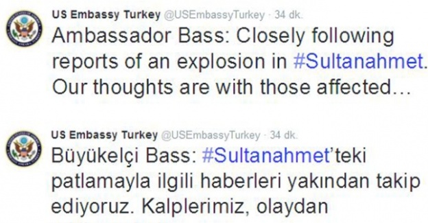 ABD’nin Ankara Büyükelçisi John Bass, "Sultanahmet’teki patlamayla ilgili haberleri yakından takip ediyoruz. Kalplerimiz, olaydan etkilenenlerle" dedi.