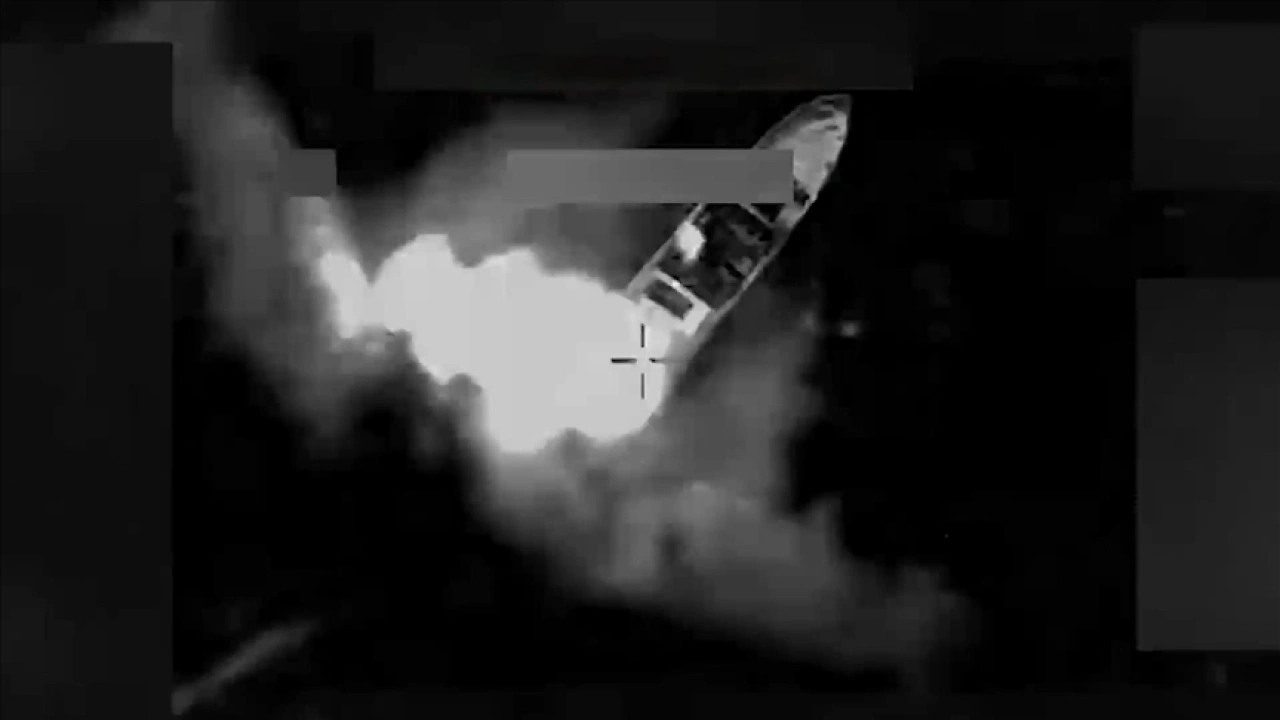 İstihbarat bulgularının, geminin uyuşturucu kaçakçılığı faaliyetlerinde bulunduğunu doğruladığı savunulan açıklamada, saldırıya ilişkin görüntüler de yer aldı.