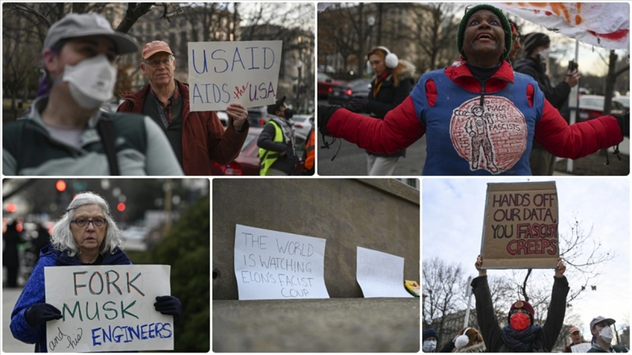 ABD'de USAID önünde toplanan Demokratlar Musk'ı protesto etti