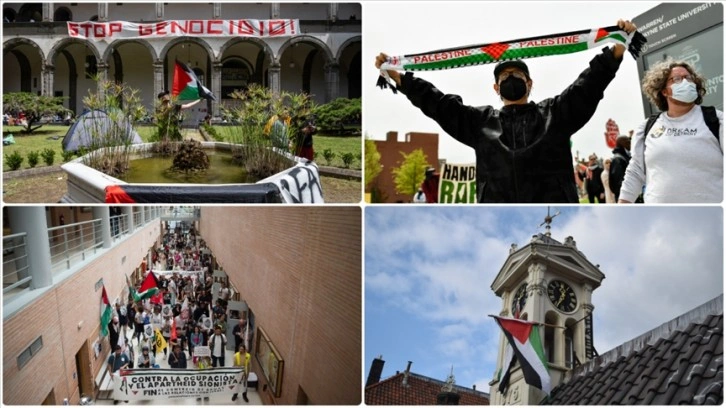 Dünyanın dört bir yanındaki üniversite öğrencileri, Columbia Üniversitesinde başlayan gösterilere destek vermek ve İsrail'in Gazze'ye saldırılarını protesto etmek amacıyla kampüslerinde toplanıyor.
