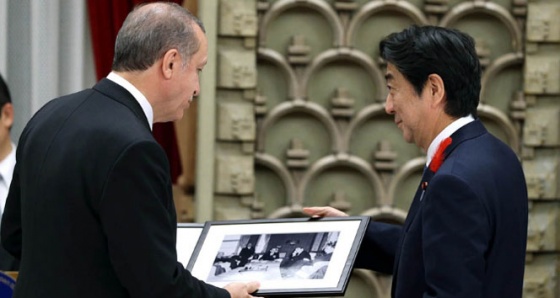 Japonya Başbakanı Shinzo Abe, ortak basın toplantısının ardından düzenlenen resmi akşam yemeği esnasında Cumhurbaşkanı Recep Tayyip Erdoğan’a rahmetli Başbakan Adnan Menderes’in Japonya ziyareti sırasında çekilmiş olan bir fotoğrafını hediye etti.