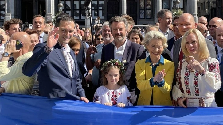 Brüksel'in merkezindeki tarihi Grand Place meydanında bayrağın açılması için düzenlenen etkinliğe, AB Komisyonu Başkanı Ursula von der Leyen de katıldı.