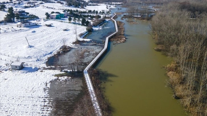 Her mevsim farklı güzelliğe bürünen Acarlar Longozu'nda, kar yağışının ardından beyaz örtüyle kaplandı.