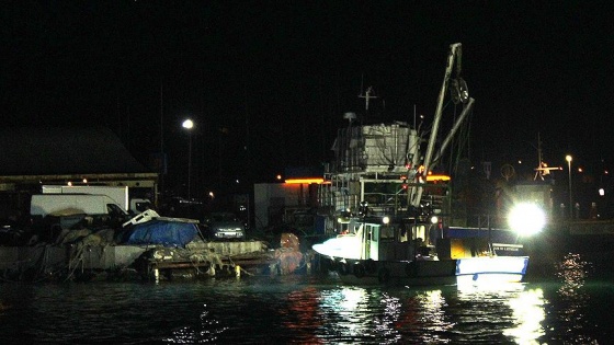 O sırada devriye görevinde bulunan Ayvalık Sahil Güvenlik Komutanlığına bağlı Sahil Güvenlik 8'in mürettebatı yangını fark ederek müdahale etmeye başladı. Sahil Güvenlik ekipleri, teknede bulunan 15 balıkçıyı bota alarak kurtardı.