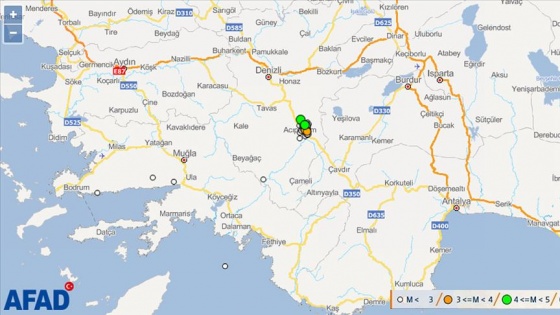 Afet ve Acil Durum Yönetimi Başkanlığının (AFAD) internet sitesinde yer alan bilgiye göre, saat 14.30'da merkez üssü Acıpayam olan 4,9 büyüklüğünde deprem kaydedildi.