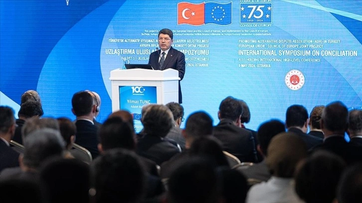 Adalet Bakanı Yılmaz Tunç, Beyoğlu'ndaki bir otelde Avrupa Birliği (AB) ve Avrupa Konseyi ile Adalet Bakanlığı işbirliğiyle yürütülen "Türkiye'de Alternatif Uyuşmazlık Çözüm Yollarının Geliştirilmesi Projesi" kapsamında düzenlenen "Uzlaştırma Uluslararası Sempozyumu"na katıldı.
