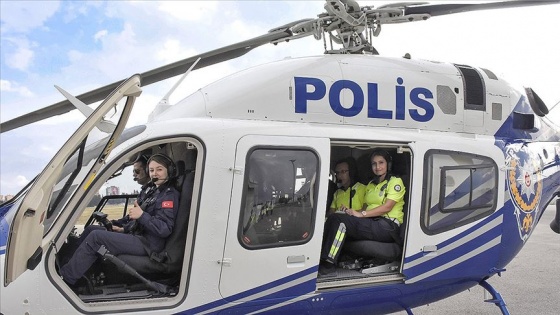 Komiser Pilot Elif Gökçe Erol'un kullandığı helikopterdeki trafik polisi Mehtap Gökgöl, trafik kurallarını ihlal eden sürücüleri telsizle uygulama noktalarına bildirdi.