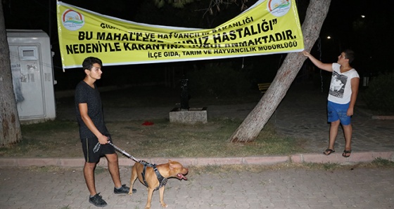 ardından mahallemizde, kuduz hastalığı ile ilgili broşürler dağıttık, mahallenin belli yerlerine pankartlar astık. Mahallemiz şuan da karantina altına alındı, dünden itibaren aşılama başladı” dedi.