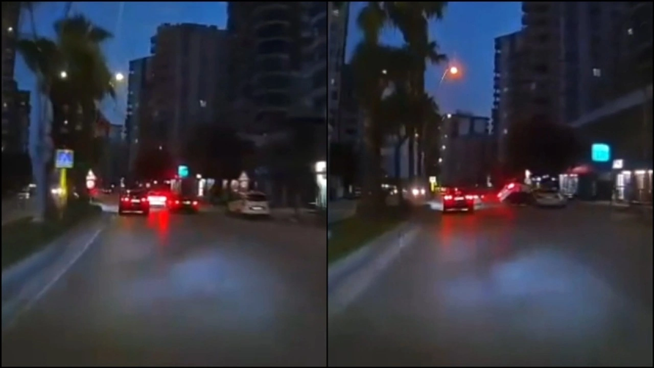 Adana'da bir otomobilin makas atmaya çalıştığı sırada başka bir otomobilin kaza yapmasına neden olması araç içi kamerası ile kaydedildi