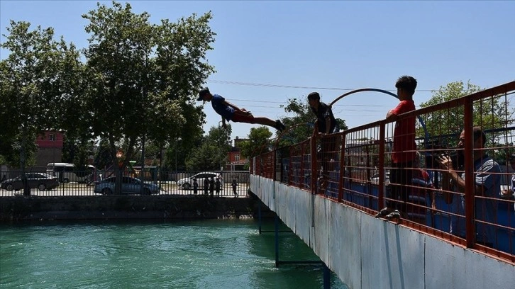 Vatandaşlar parklardaki çeşmelerde yüzünü yıkayarak serinlemeye çalışırken bazı çocuklar da tehlikeye ve uyarılara rağmen sulama kanallarına girdi.