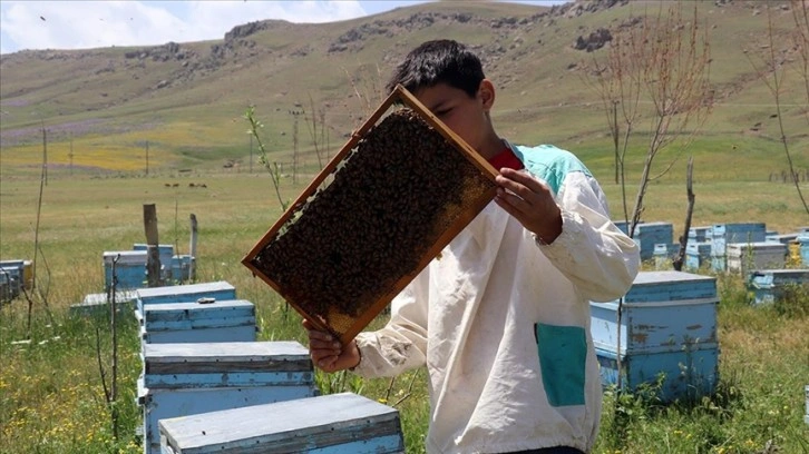 Ağrı'nın Hamur ilçesinde yaşayan 12 yaşındaki Abdulsamet Turgut, mesleği öğrenmek ve babasına yardımcı olabilmek için yaz tatilinde zamanını, birçok kişinin yaklaşmaya çekindiği arı kovanlarının yanında geçiriyor.