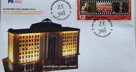 AK Parti, 15. kuruluş yıldönümü etkinlikleri kapsamında partinin kurucu lideri Cumhurbaşkanı Recep Tayyip Erdoğan ve Başbakan Binali Yıldırım'ın fotoğraflarının bulunduğu özel pul bastırdı. Film şeridi şeklinde hazırlanan pulun üzerinde, Cumhurbaşkanı Erdoğan, Başbakan Yıldırım ve AK Parti mitinginden bir fotoğraf yer aldı. Ayrıca, Genişletilmiş İl Başkanları Toplantısı’na katılan isimlere yine üzerinde özel pulun yer aldığı bir de hatıra zarfı dağıtıldı. Bu zarfın üzerinde AK Parti Genel Merkezi’nin fotoğrafı ve AK Parti’nin kuruluşunun 15. yılı damgası yer alıyor.