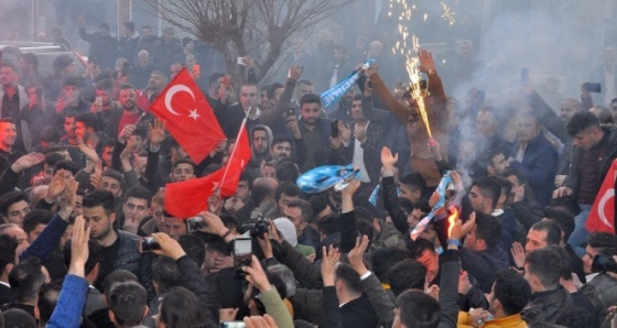 Vatandaşlar, AK Parti Şırnak Belediye Başkan adayı Mehmet Yarka lehine sloganlar attı. Vatandaşlar daha sonra havai fişekler atarak halay çekti.