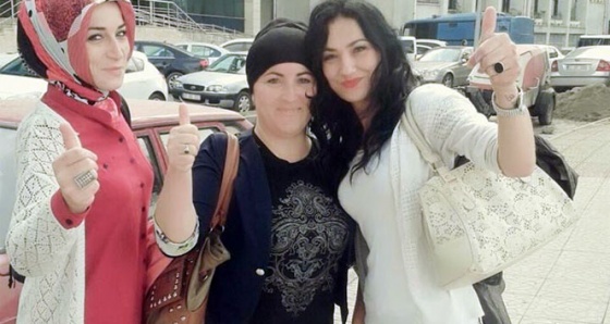 ALDATILAN KADINLARIN ADLİYE ÖNÜNDE MUTLULUK POZU