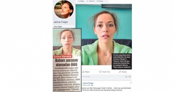 “Emine Karaca” isimli kişinin fotoğrafını web üzerinden özel programlarla arattırdık. Çıkan sonuç Emine Karaca diye paylaşılan fotoğraf Alman film yıldızı Janina Flieger'a aitti.