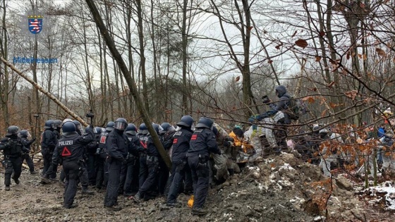 Almanya'da çevreci aktivistler, Hessen kentindeki Dannenröder ormanında otoban çalışması nedeniyle ağaçların kesildiği ve çevrenin tahrip edildiği gerekçesiyle gösteri yaptı.