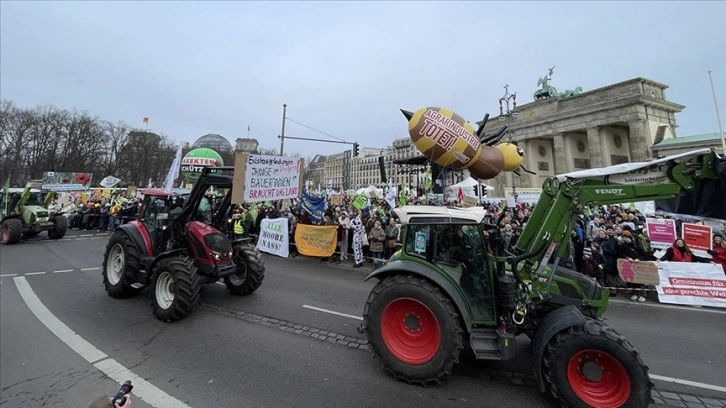 Çiftçi ve çevre örgütlerinin yer aldığı “Wir haben es satt” (Artık bıktık) adlı inisiyatifin çağrısıyla binlerce kişi, tarihi Brandenburg Kapsı önünde toplandı.