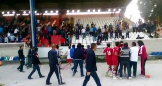 Kendi taraftarının sözlü tacizine uğrayan Torbalıspor oyuncusu Ömer Kaplan, tribüne çıkmaya çalışırken teknik heyet ve polis tarafından güçlükle soyunma odasına yönlendirildi.