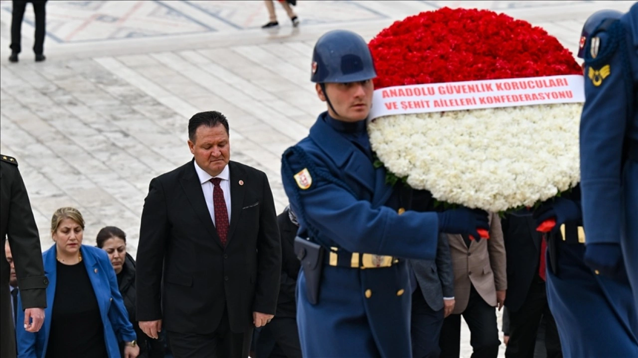 Kandemir'in mozoleye çelenk bırakmasının ardından saygı duruşunda bulunuldu.