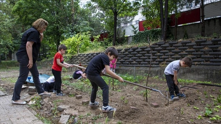 Okullarının arka bahçesindeki verimsiz alanı 6 ay mutfak atıklarıyla işleyen anaokulu öğrencileri, verimli hale getirdikleri bahçede sebze meyve yetiştiriyor, bu ürünleri birlikte tüketiyor.